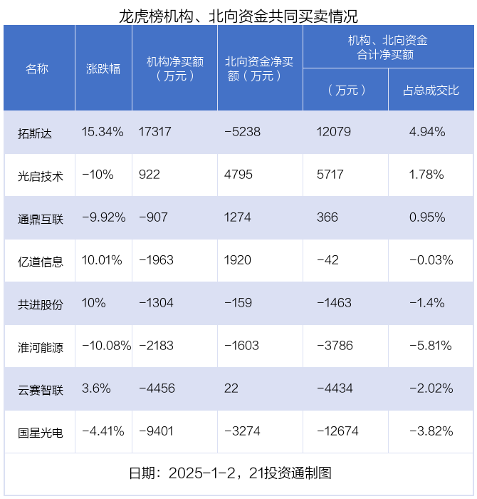 (原标题:龙虎榜丨2.03亿资金抢筹鑫科材料世博体育(中国)登录入口,机构狂买拓斯达(名单))